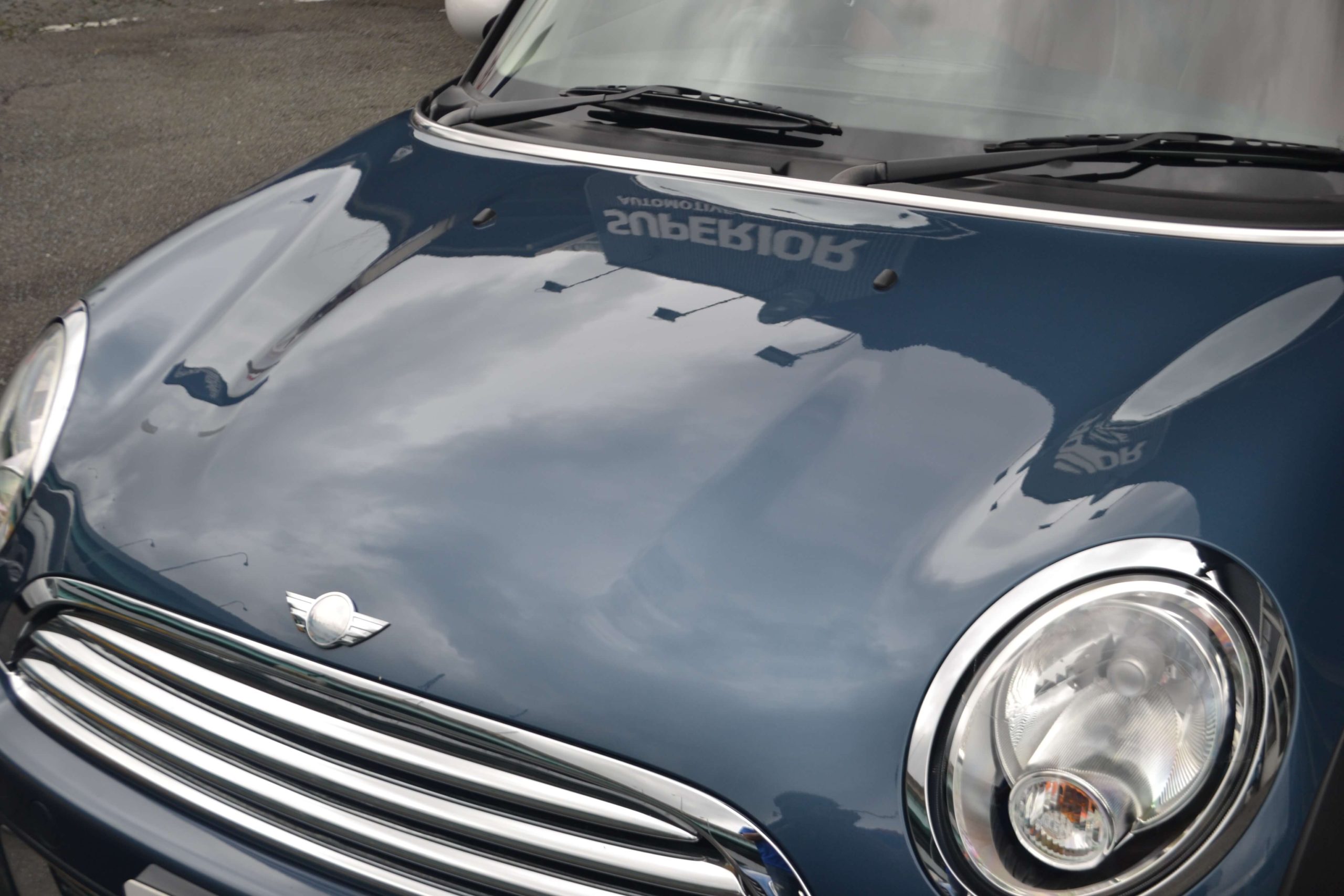 希少なホライゾンブルーメタリック×ホワイトルーフの組み合わせの「MINI クーパー」が入庫致しました。
