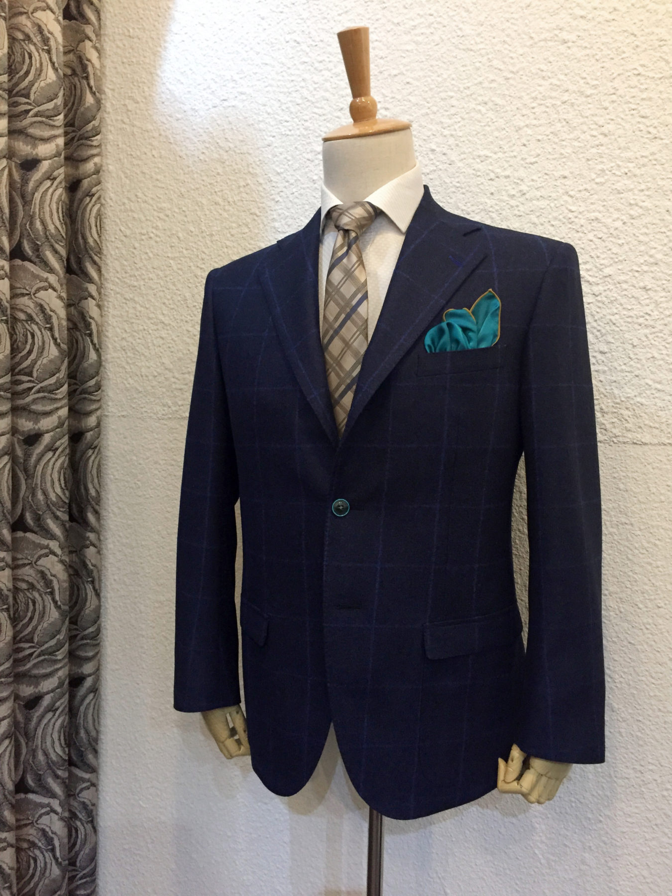 代表的なウインドーペン柄の生地をベースにオーダー頂きましたジャケットです。