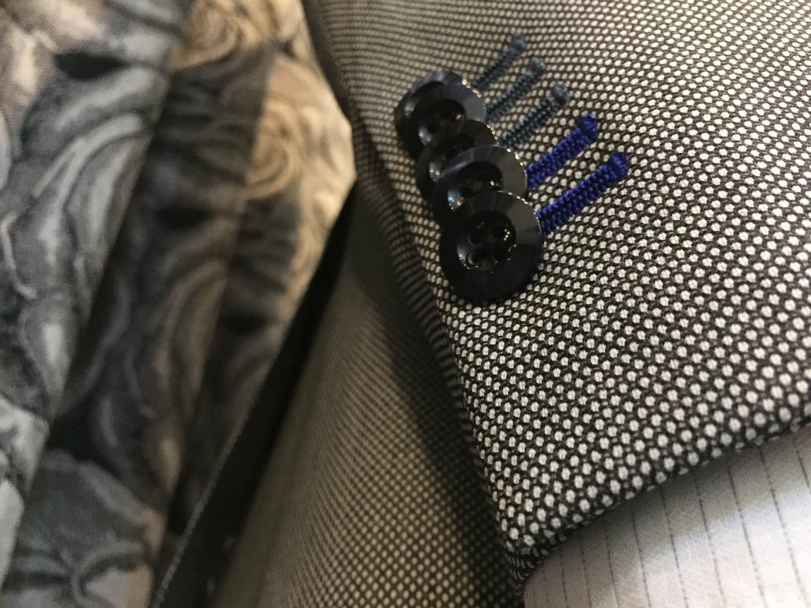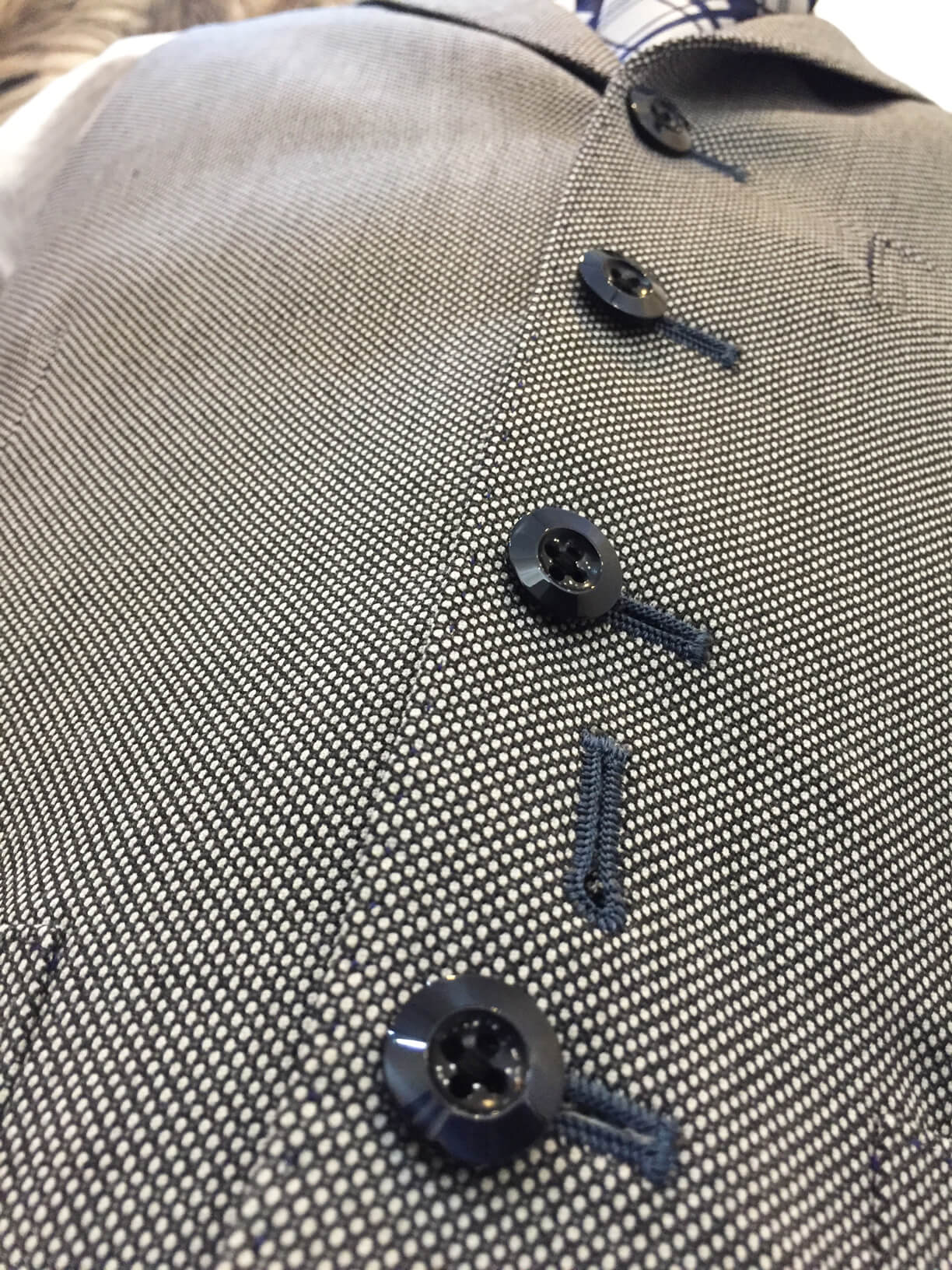 遠くからだと無地のように見えるほどの細かい柄のバーズアイ。