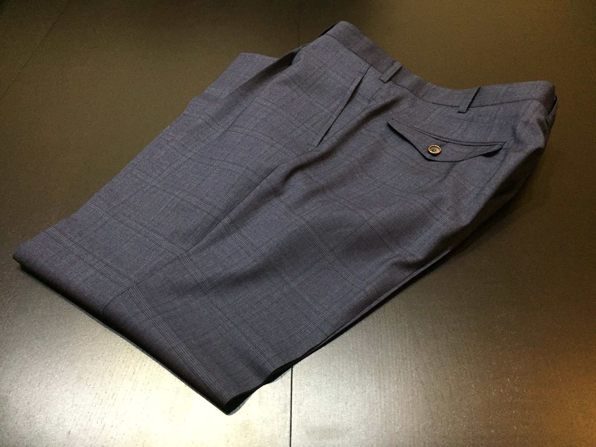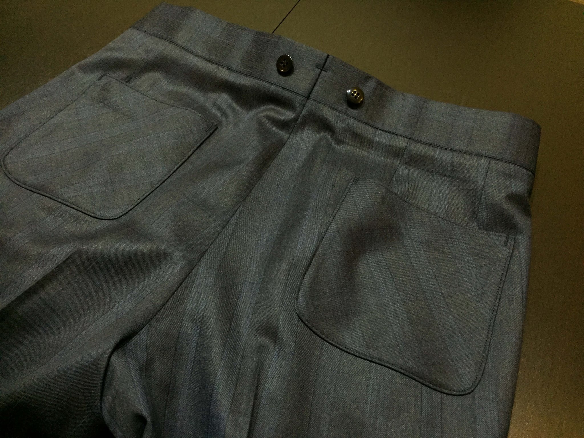 後ろポケットはスーツでは希少なアウトポケットをセレクトし、オーダーならではの拘りある1着に仕上がりました。