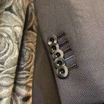襟やポケットにはAMFステッチと呼ばれるステッチ(細かな点状の糸)を、襟穴や袖部分にはスーツに映える色糸使いを取り入れるなど所々にアクセントを散りばめています。