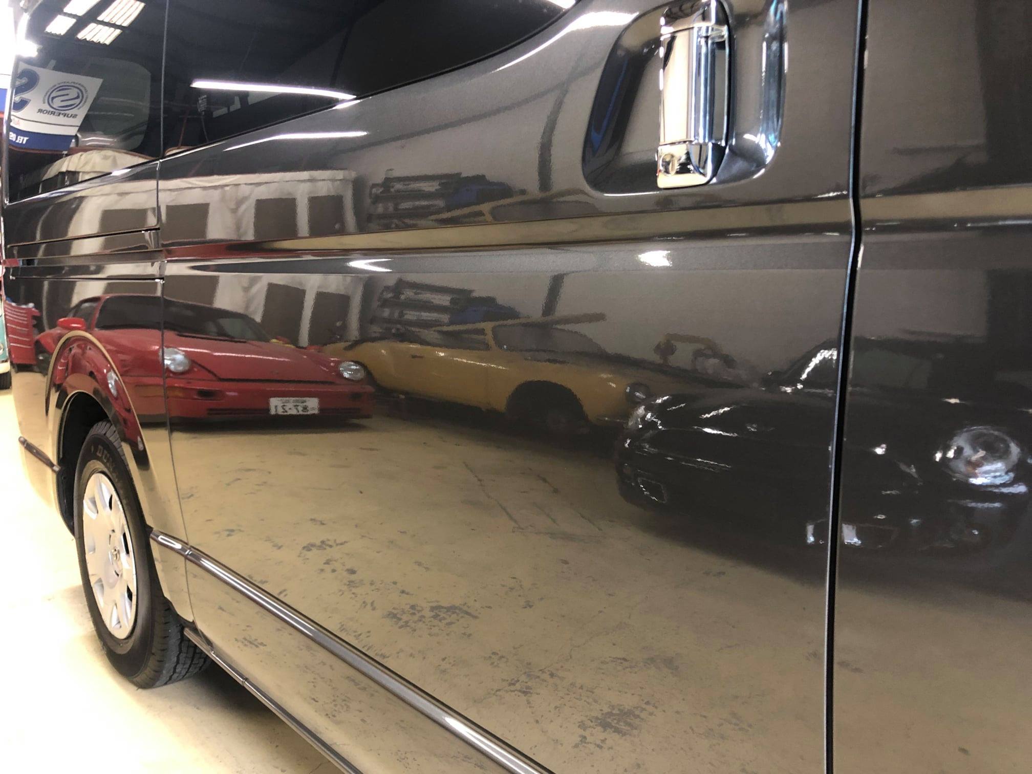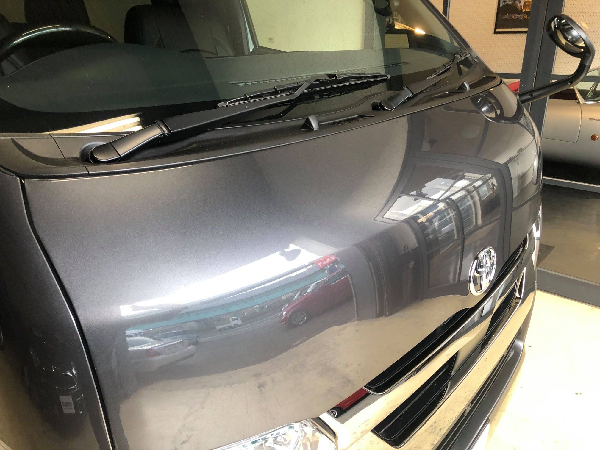 それを取り除くポリッシングを行い、新車塗膜を保護するガラス皮膜を塗りこみ、硬度9Hの犠牲幕を作っていきます。