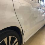 今回、ご紹介するのはミニバンでの自損事故事例の多い、リヤドア~クォーターパネル部の修理です。